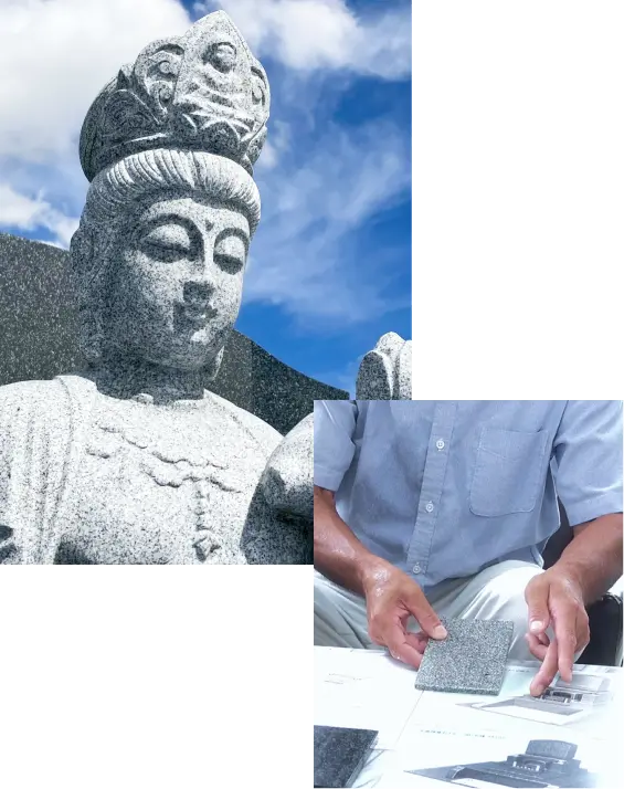仕入れから加工、施工に至るまでをすべて自社で一貫して行うことで、品質の確かさとコストの透明性を実現。大切なお墓にふさわしい石を、責任を持ってお届けいたします。